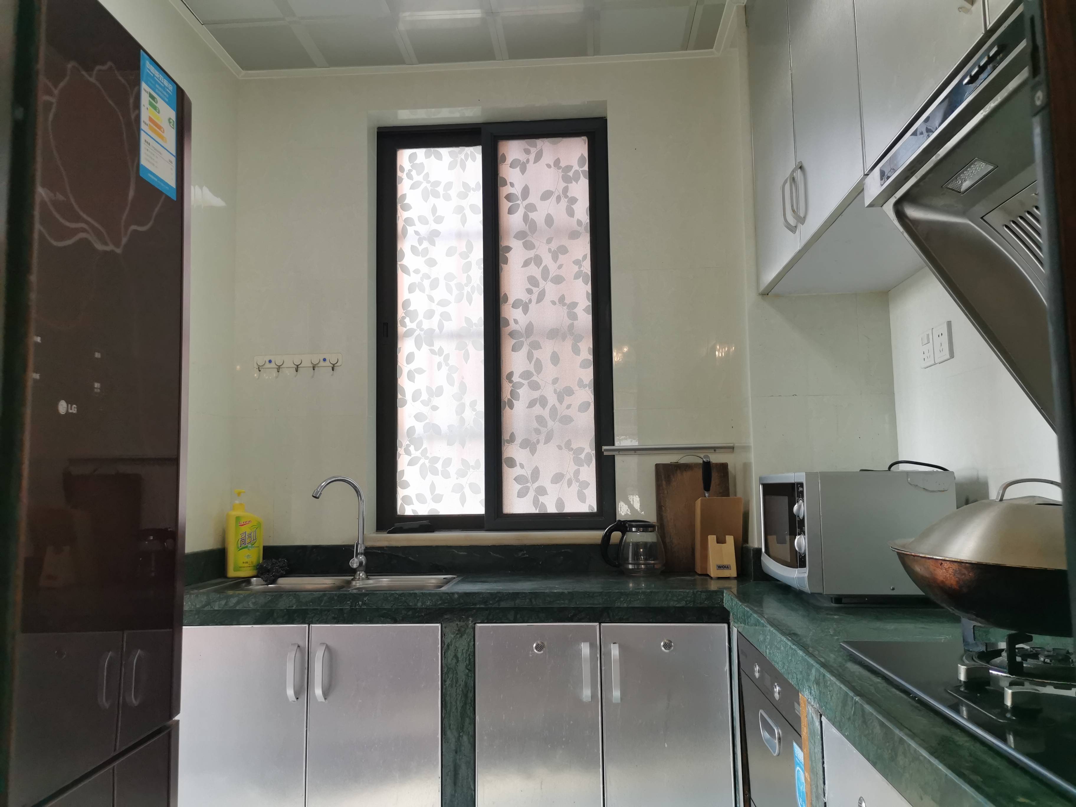 小区品质不错,绿化环境也可以,有泳池,有物业管理,有停车位,居家安静舒适。二房二厅一卫一阳台,户型方正,格局不错,光线好,通风好。朝东向,可观江景,实业非常不错。精装修,北欧风格。周边环境非常不错